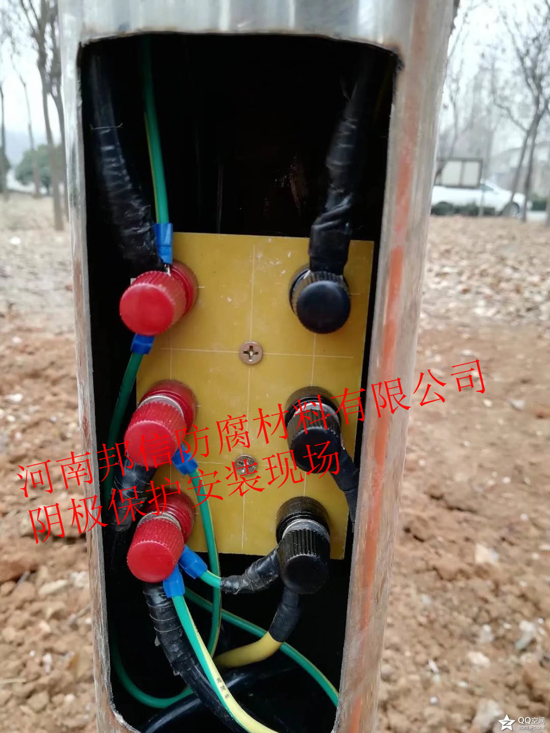每一站所使用的陰極保護材料有:固態去耦合器4臺、火花間隙型等電位連接器4個、不銹鋼測試樁4根、鋅合金犧牲陽極套裝40個、鎂合金犧牲陽極40個、鋅包鋼接地極40根、長效硫酸銅參比電極4個、接地模塊20塊、電離子接地極16根、放熱焊接與鋁熱焊劑、補傷片配套使用。