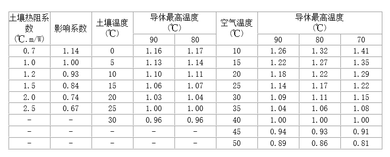 (3) 不同環(huán)境因素時(shí),電纜載流量的校正系數(shù)。