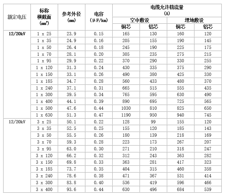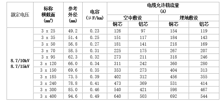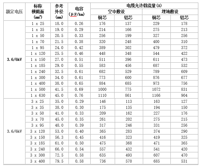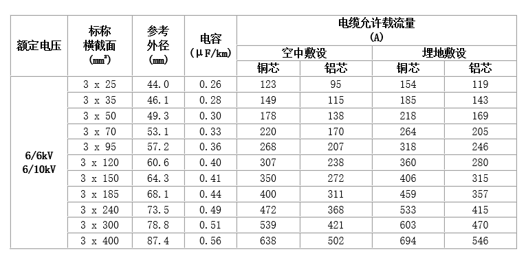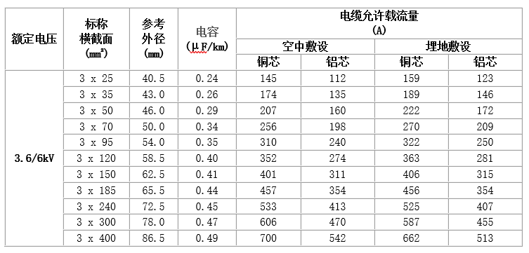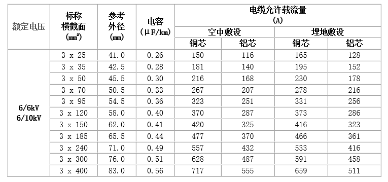 普通型電纜適用于交流額定電壓U0/U為3.6/6kV~26/35kV及以下的輸配電線路上。