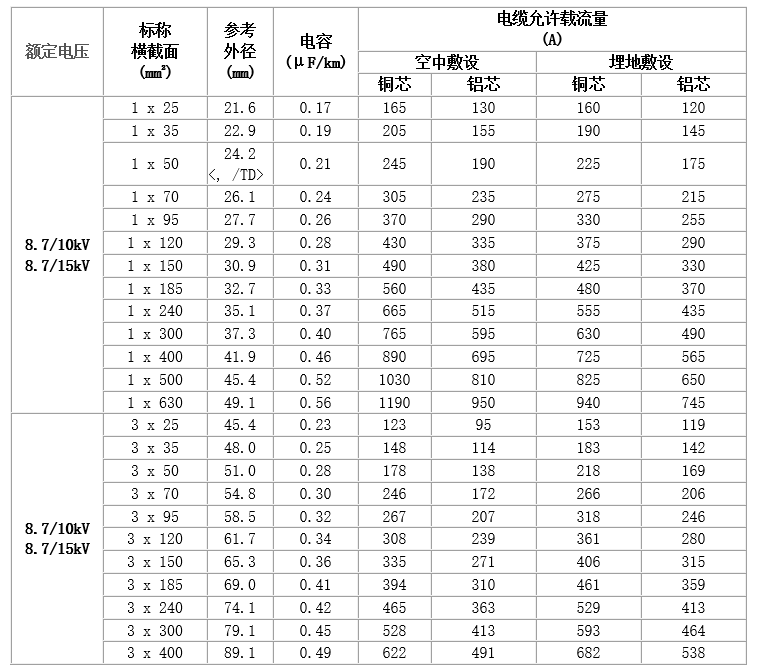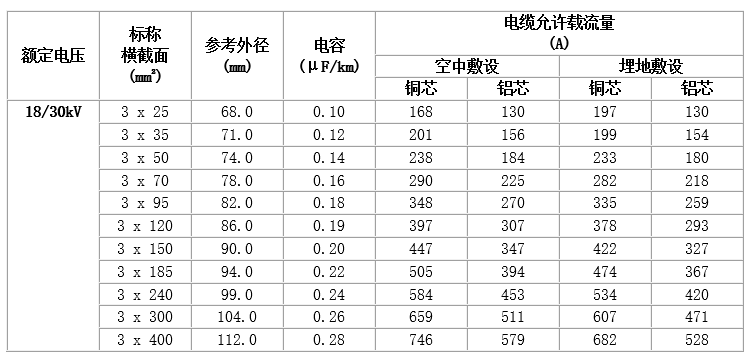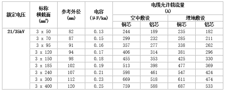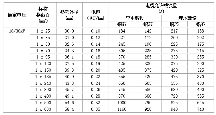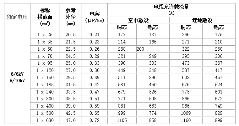 6~35kV交聯(lián)聚乙烯絕緣電力電纜,主要技術(shù)參數(shù)如下: