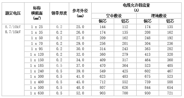 6~35kV交聯(lián)聚乙烯絕緣電力電纜,也稱中壓電力電纜,其額定電壓分為幾個(gè)等級(jí):3.6/6kV, 6/10kV, 8.7/15kV, 12/20kV, 26/35kV,其中最常用的電壓等級(jí)是8.7/15kV。