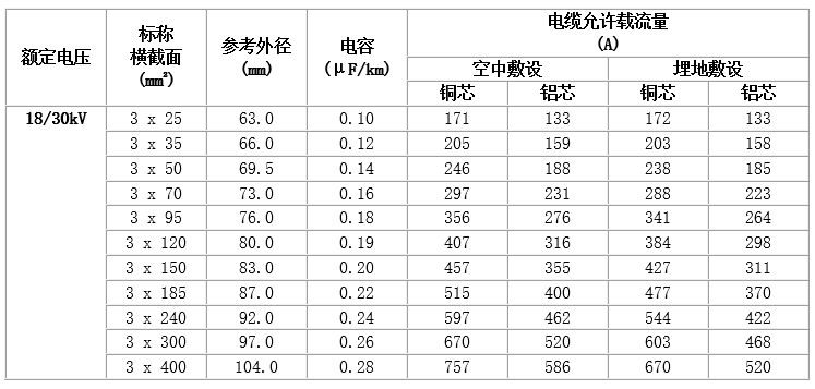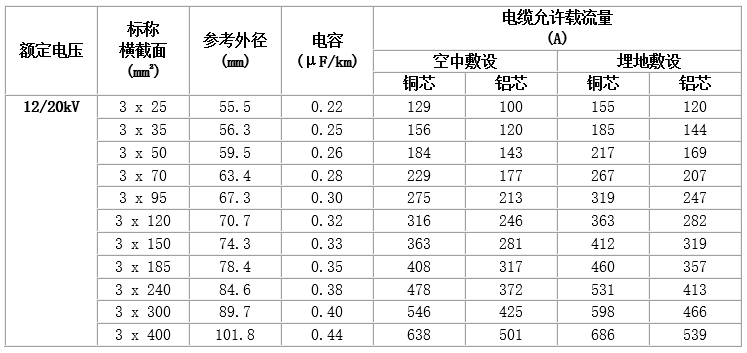 (3) 短路時(shí)(最長(zhǎng)時(shí)間不超過5秒),電纜導(dǎo)體的最高溫度不超過250℃。